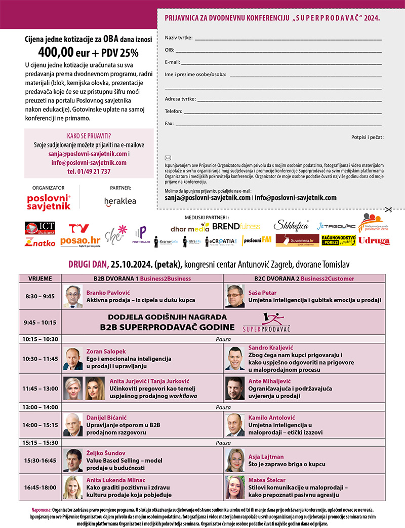 Ova elektronička pošta poslana vam je sukladno članku 107. Zakona o elektroničkim komunikacijama. Na našoj e-mail listi se nalazite jer ste se registrirali na internetskim stranicama RACUNOVODSTVO-POREZI.HR, POSLOVNI-SAVJETNIK.COM, UDRUGA.HR ili smo vašu e-mail adresu saznali kao javno dostupnu. Ispričavamo se ukoliko niste zainteresirani za naše obavijesti. Ukoliko ne želite primati naše obavijesti, možete se odjaviti s liste primatelja klikom ovdje. www.racunovodstvo-porezi.hr Prema čl. 50. Zakona o izmjenama i dopunama Zakona o elektroničkim komunikacijama (NN 90/11) ova poruka se ne može smatrati SPAM-om jer sadrži kontakte i adrese pošiljatelja te upute za brisanje s liste. |